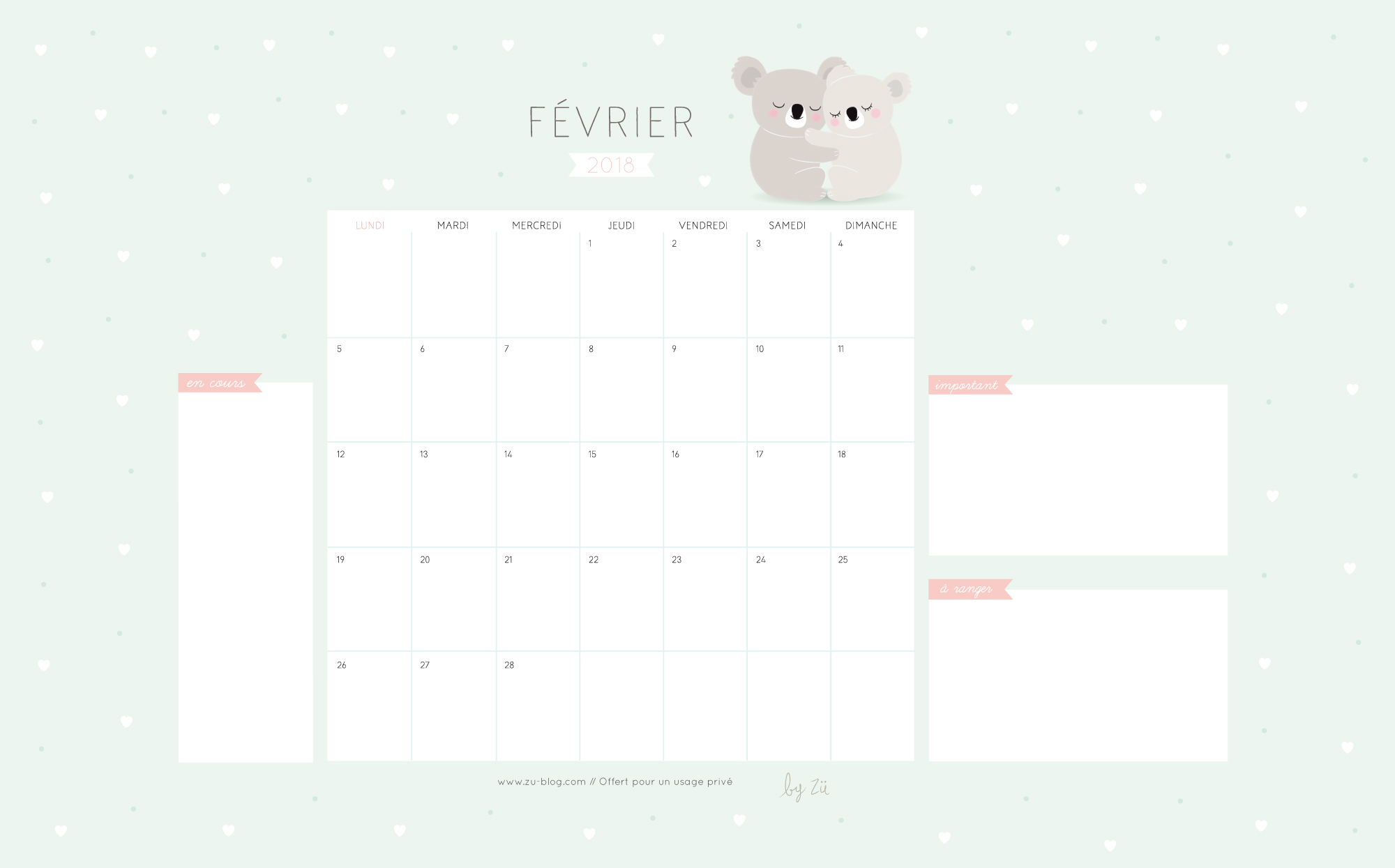 Calendrier février 2018 - version papier (A4)