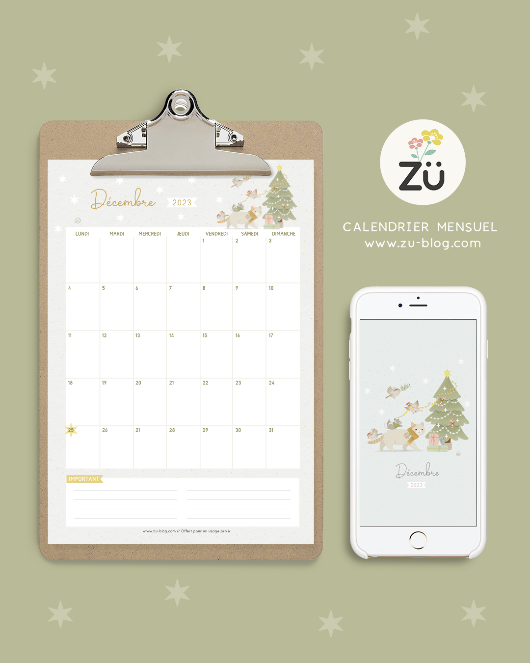 Et voici (déjà !) le calendrier du mois de décembre.